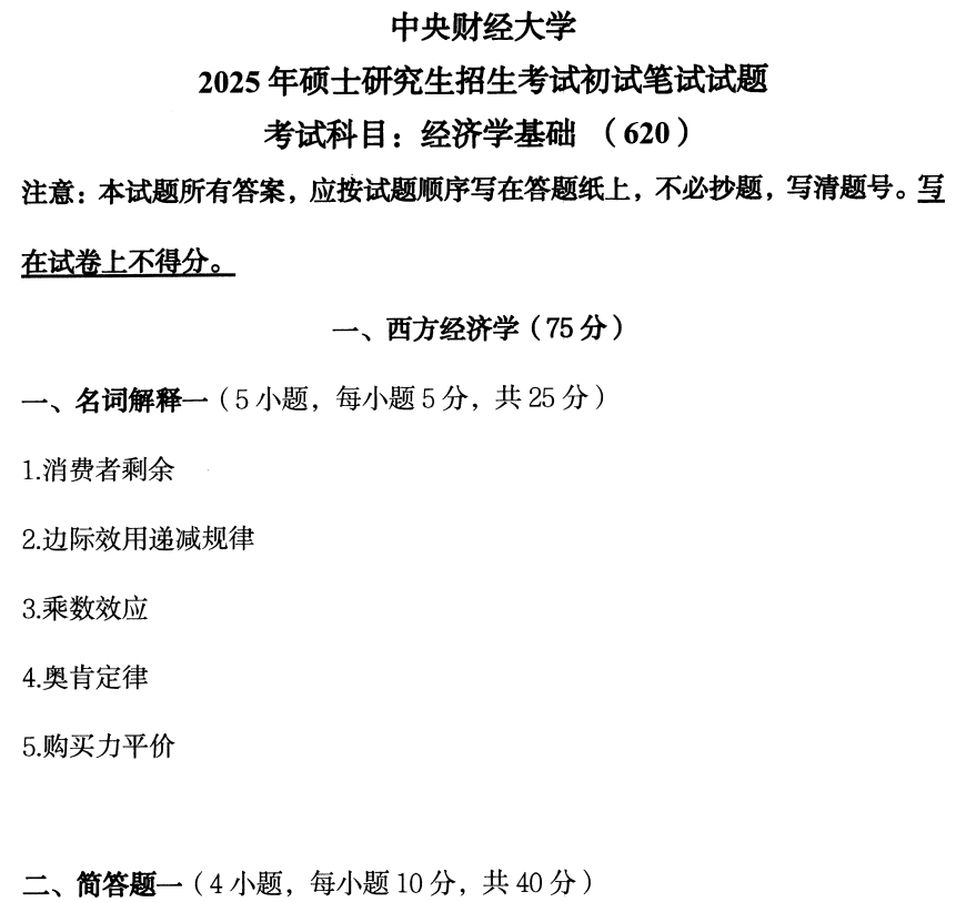 中财中央财经大学620经济学基础2025(无答案).pdf