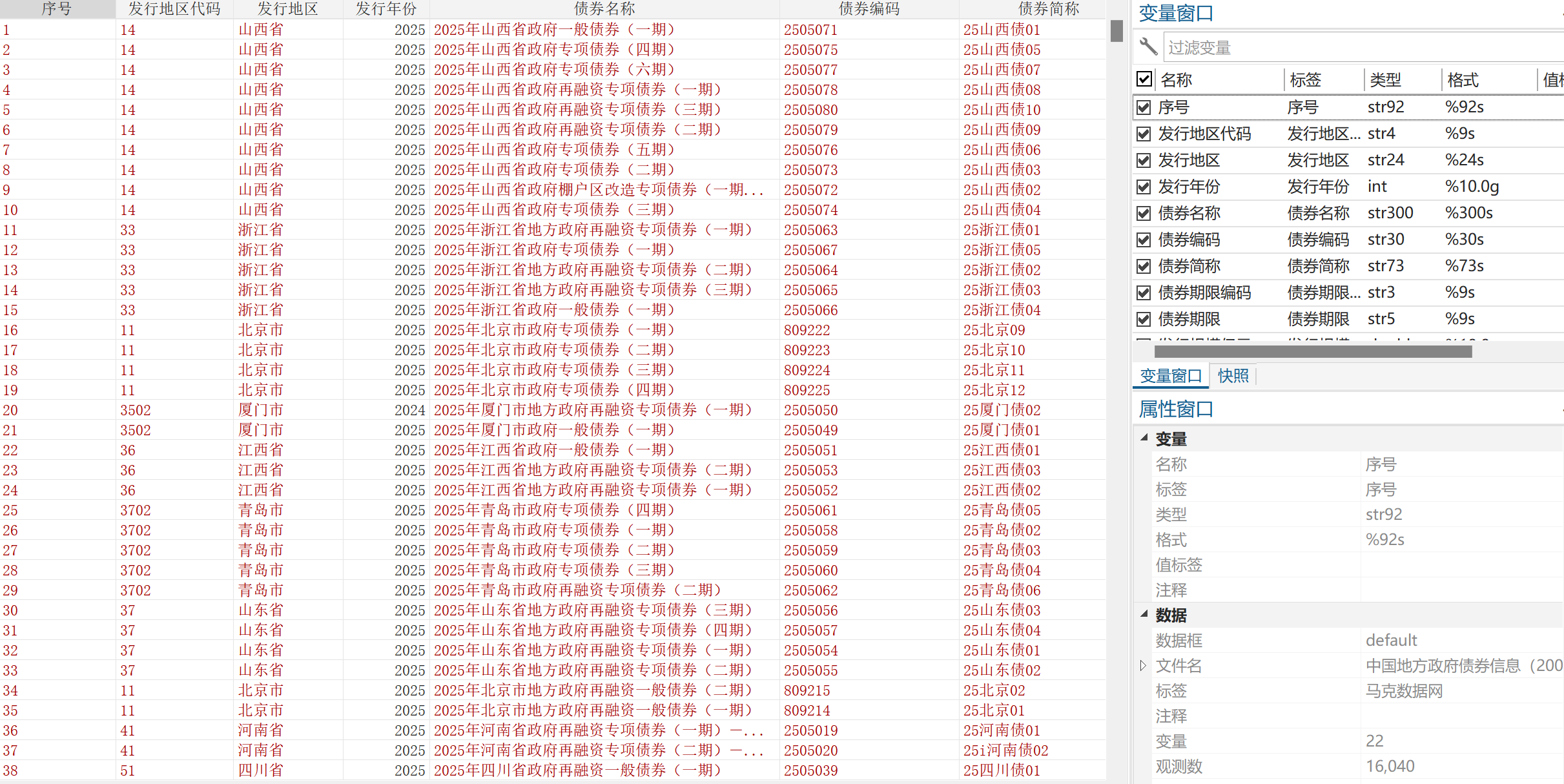 数据说明:系统整理各地区地方政府债券发行的基本信息、规模结构、期限安排及利率要素,形成长期、连续的债券层面数据库