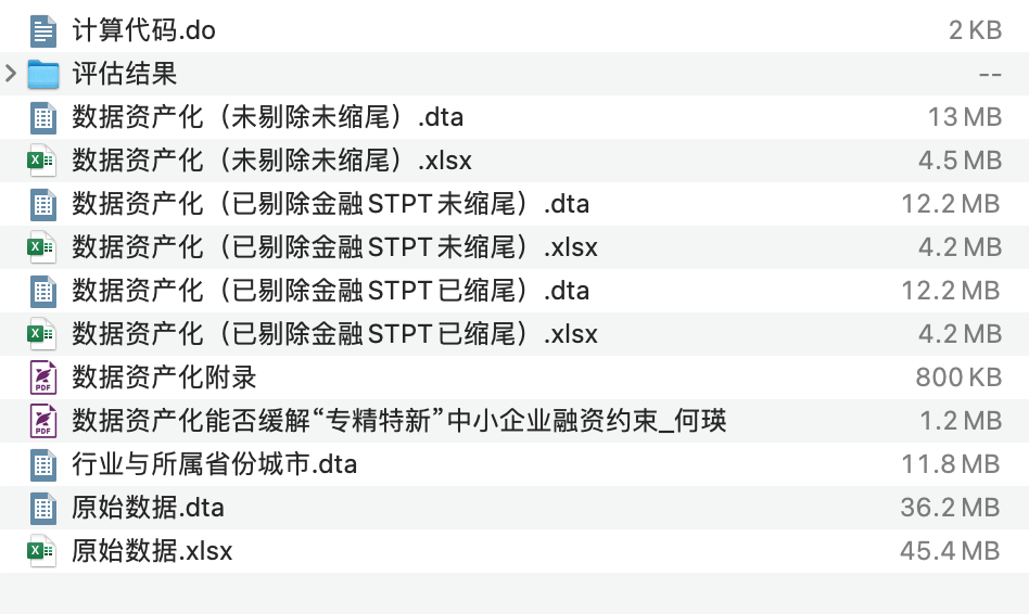 文件格式:Dta格式(使用Stata打开)、Xlsx格式(使用Excel打开)
