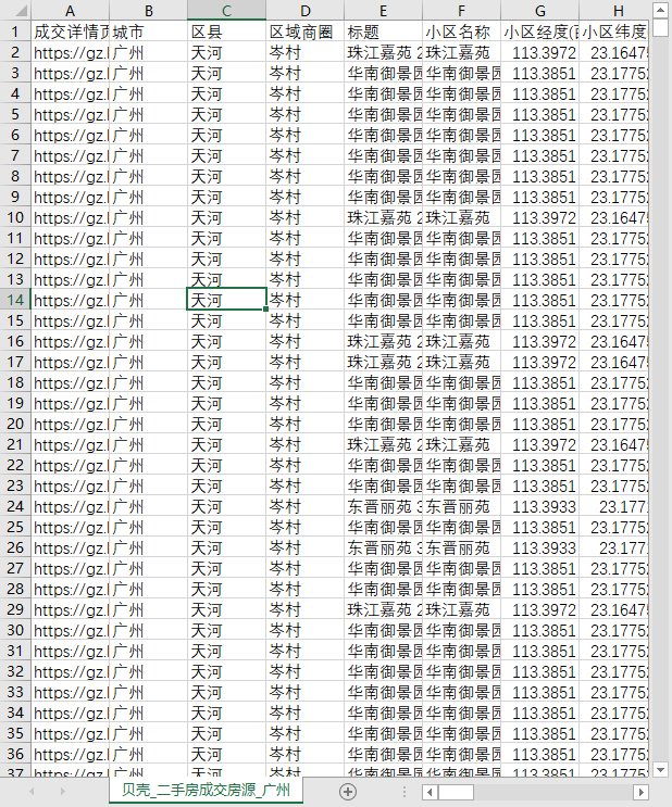 数据指标:成交详情页url,城市,区县,区域商圈,标题,小区名称,小区经度(百度),小区纬度(百度),小区详情url,挂牌时间,成交时间,成交价格/万,成交均价 元/平,挂牌价格/万,成交周期/天,调价/次,带看/次,关注/人,游览/次,房屋类型,所在楼层,建筑面积,户型结构,套内面积,建筑类型,房屋朝向,建成年代,装修情况,建筑结构,供暖方式,梯户比例,配备电梯,lian家编号,交易权属,房屋用途,房屋年限,房屋权属