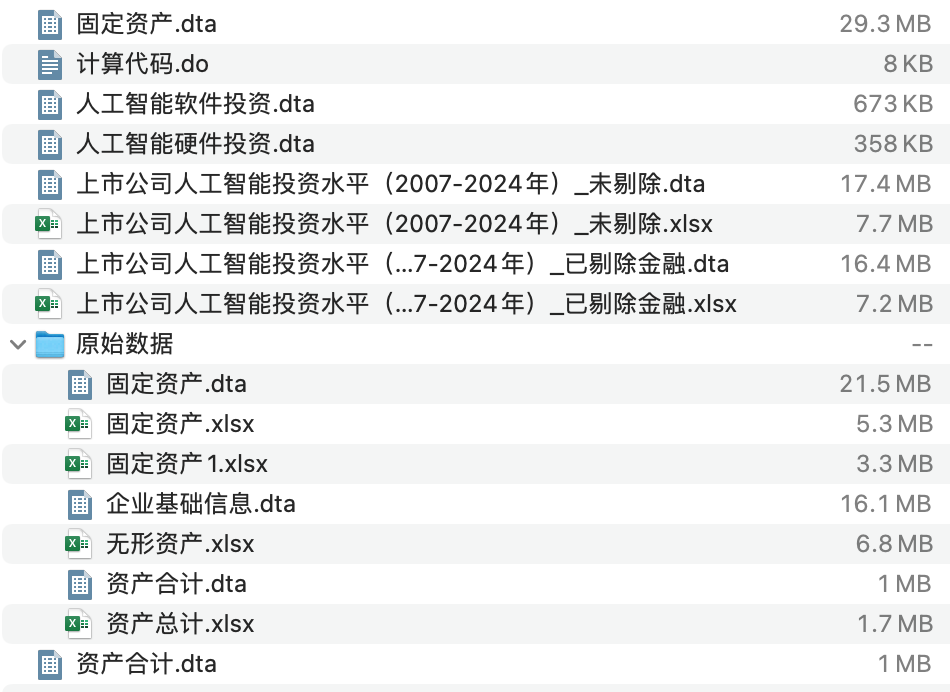 参考李果(2024)对企业人工智能投资水平指标的衡量和测算的方法,团队依据上市公司财务报告附注信息,采用关键词筛选法,整理形成人工智能投资水平数据