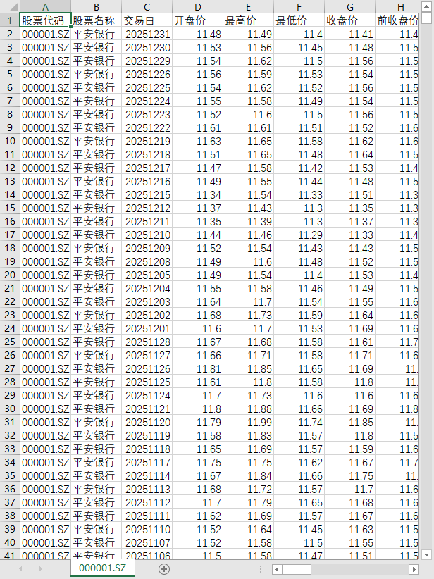 - 数据已进行除权处理,消除分红送股对价格的影响,确保数据连续性