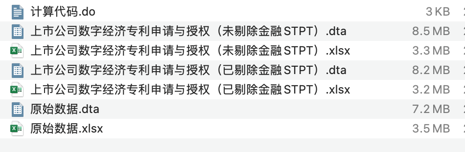 两种结果版本:上市公司数字经济专利申请与授权(未剔除金融STPT)、上市公司数字经济专利申请与授权(已剔除金融STPT)