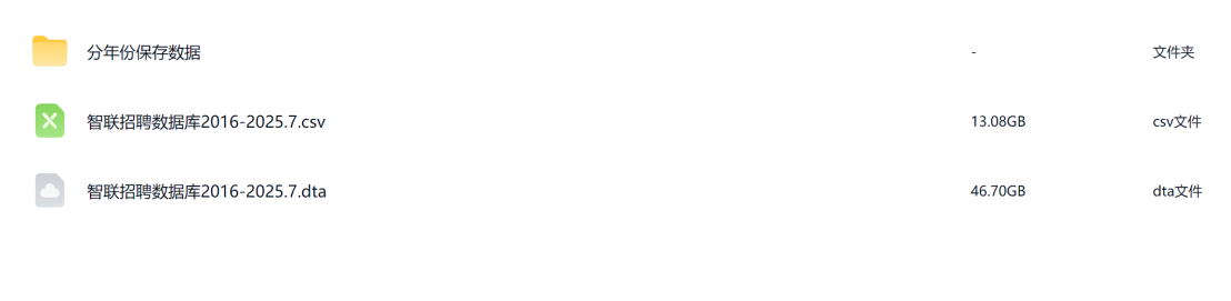 智联招聘数据库1300万条(2016-2025.7)