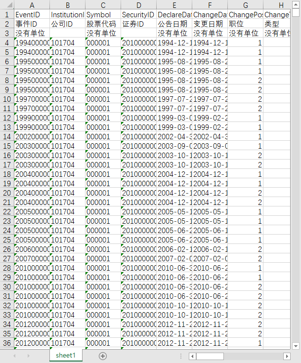 事件ID 公司ID 股票代码 证券ID 公告日期 变更日期 职位 类型 姓名 证券简称 公司全称 教育背景 职称 离职原因 离职年龄 任职年限 继任来源 是否代理 兼任情况 独立性 候选选择 简历