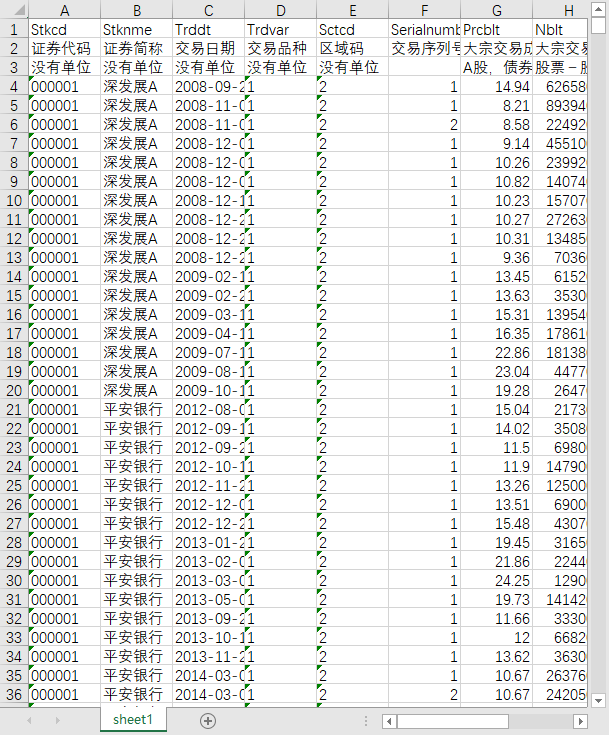 证券代码 证券简称 交易日期 交易品种 区域码 交易序列号 大宗交易成交价格 大宗交易成交量 大宗交易成交金额 卖方营业部名称 买方营业部名称