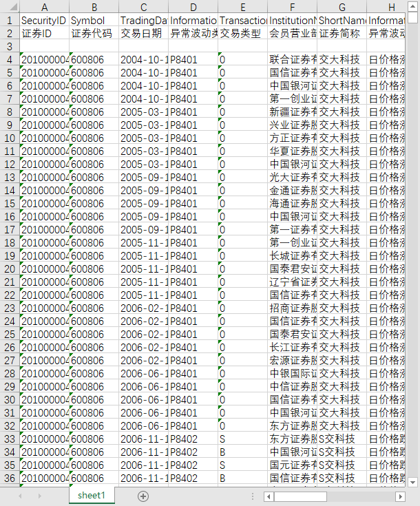 证券ID 证券代码 交易日期 异常波动类型编码 交易类型 会员营业部名称 证券简称 异常波动类型 证券类型编码 排名 营业部买入金额 营业部卖出金额 异常波动时长 异常波动时段内累计成交量 异常波动时段内累计成交额 事件ID