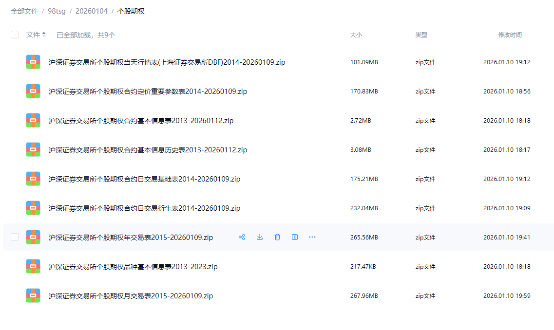 沪深证券交易所个股期权数据集2014-20260109当天行情年月日交易衍生表合约定价重要参数表等