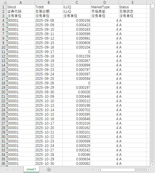 上市公司个股Amihud指标表(日)19990928-20251231正常交易STPT*ST退市整理期