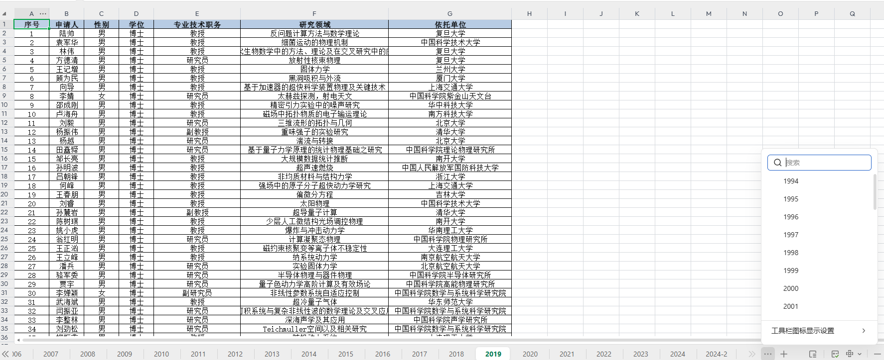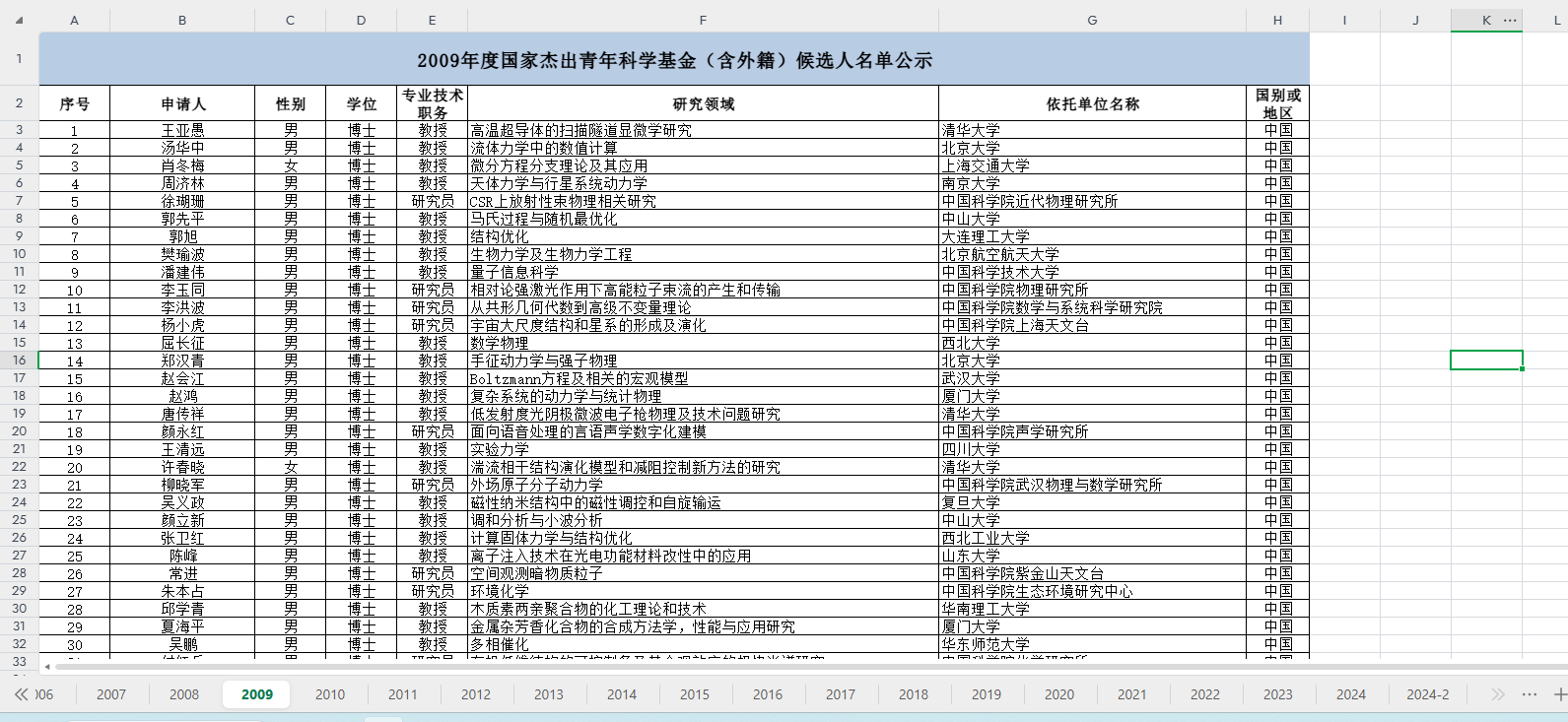 包含指标:年份 序号 姓名 性别 专业 单位 批准号 姓名 单位 题目 项目类型 邮箱 学部 院系 题目