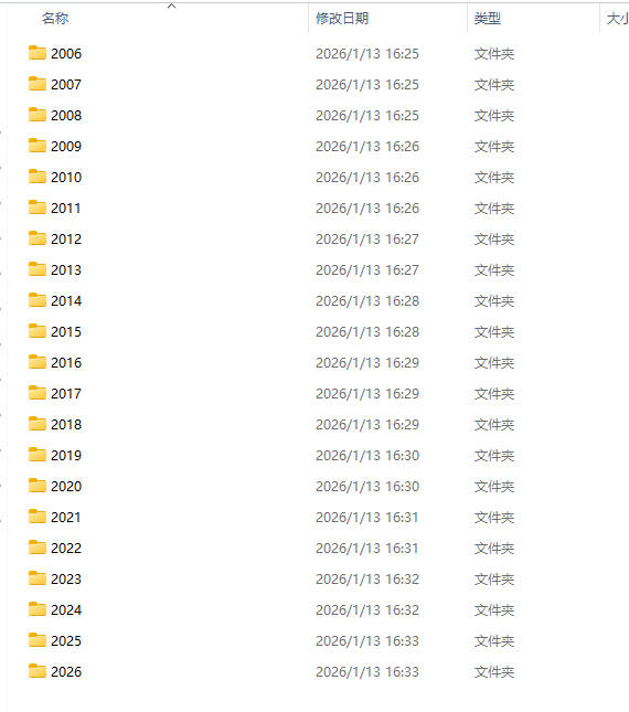 - 按年份分文件夹:2006、2007、...、2025、2026