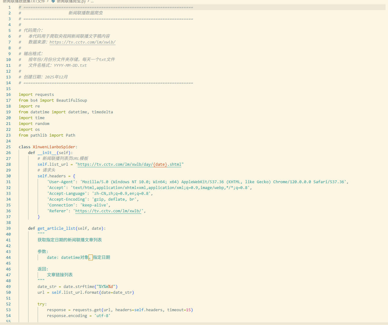 ├── 新闻联播爬虫.py 爬虫程序