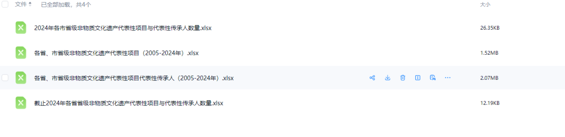 2005-2024年各省、市省级非物质文化遗产数据
