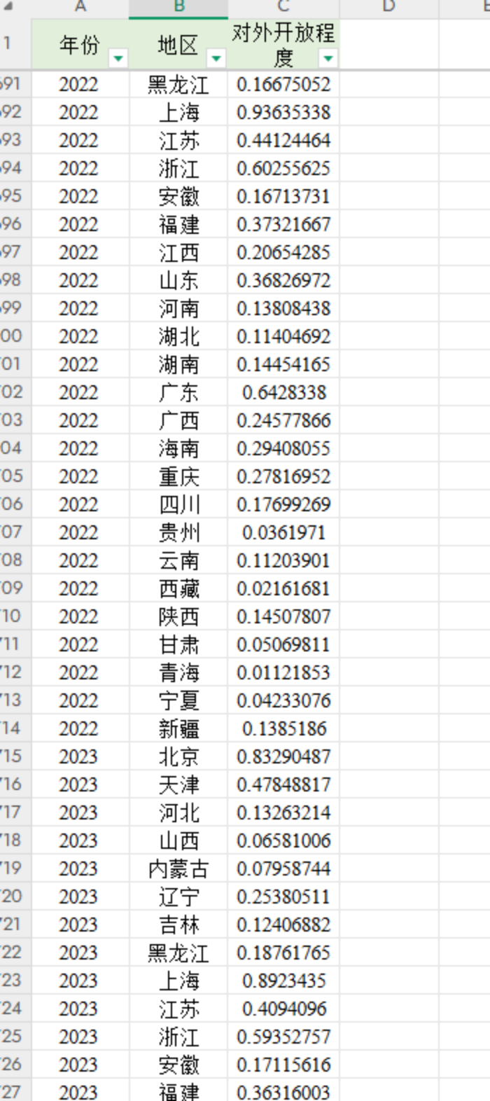 数据名称:2000-2024年31省对外开放程度数据(货物进出口总额/GDP)