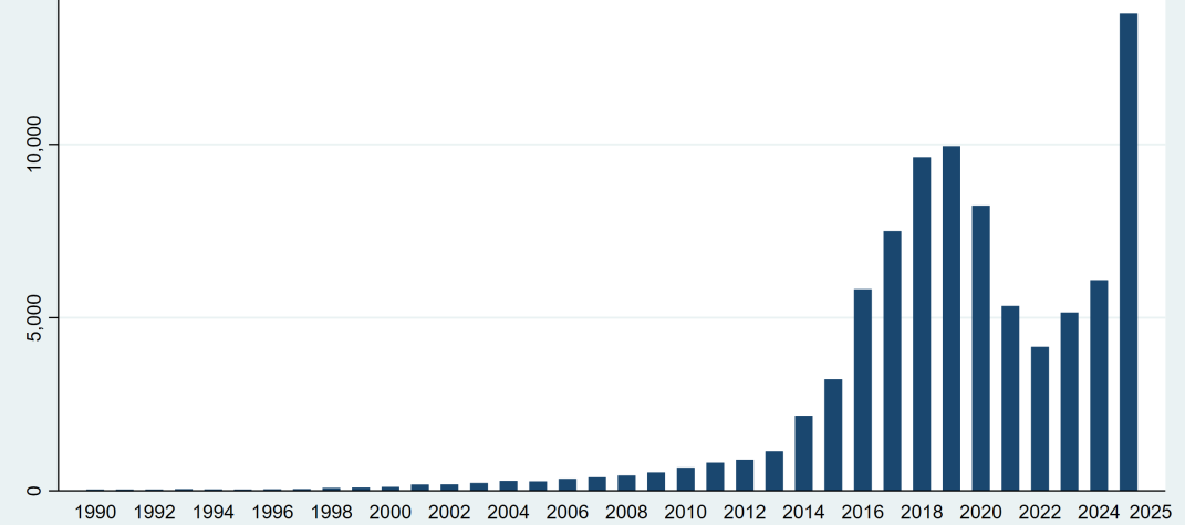 通过低空经济企业数据库整理和匹配,按照年份、地区归总获取2000—2025年各地级市低空经济企业的面板数据
