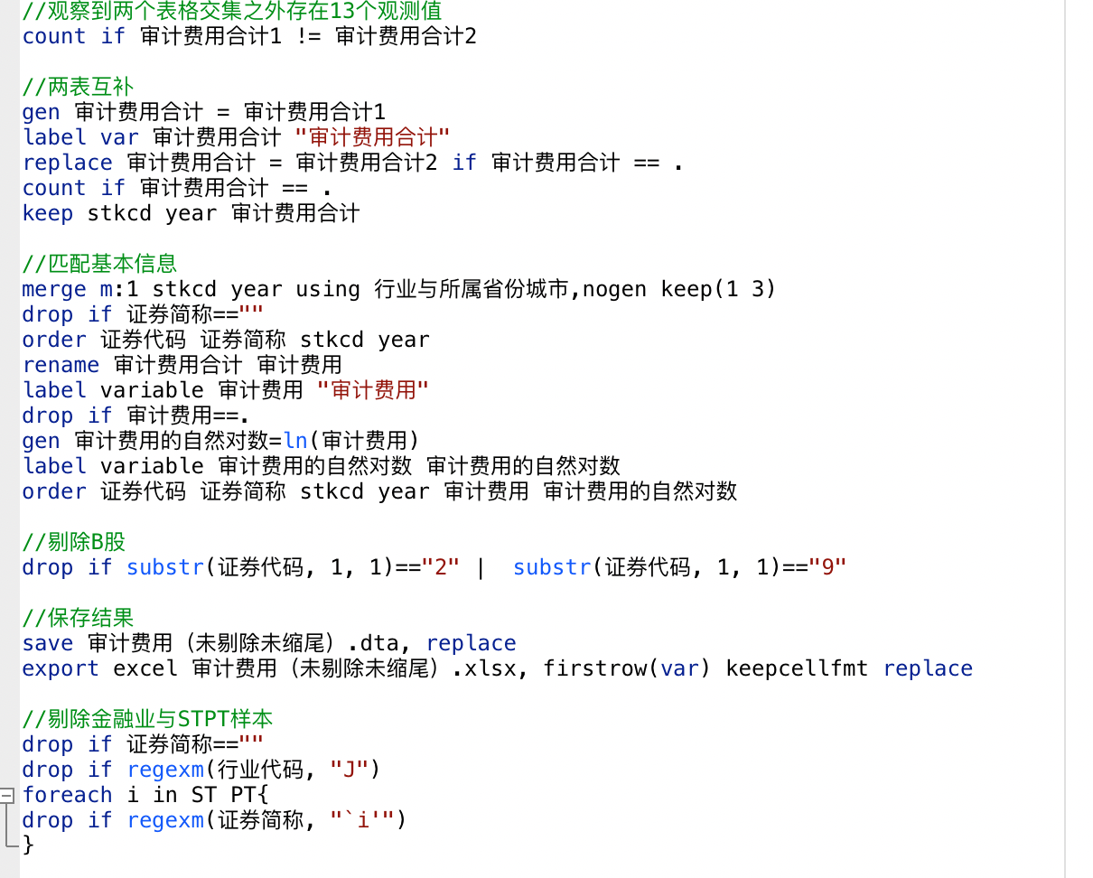 三个:审计费用(未剔除未缩尾)、审计费用(已剔除金融STPT未缩尾)、审计费用(已剔除金融STPT已缩尾)