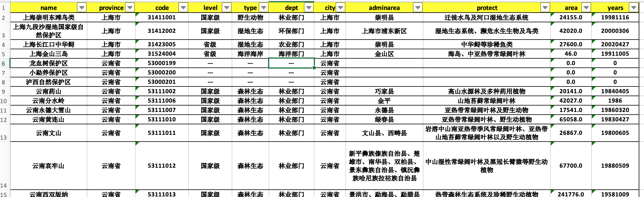 [1] China Nature Reserve Specimen Resource Sharing Platform. (2024). List and Vector Boundaries of Nature Reserves in China [Data set]. Zenodo.