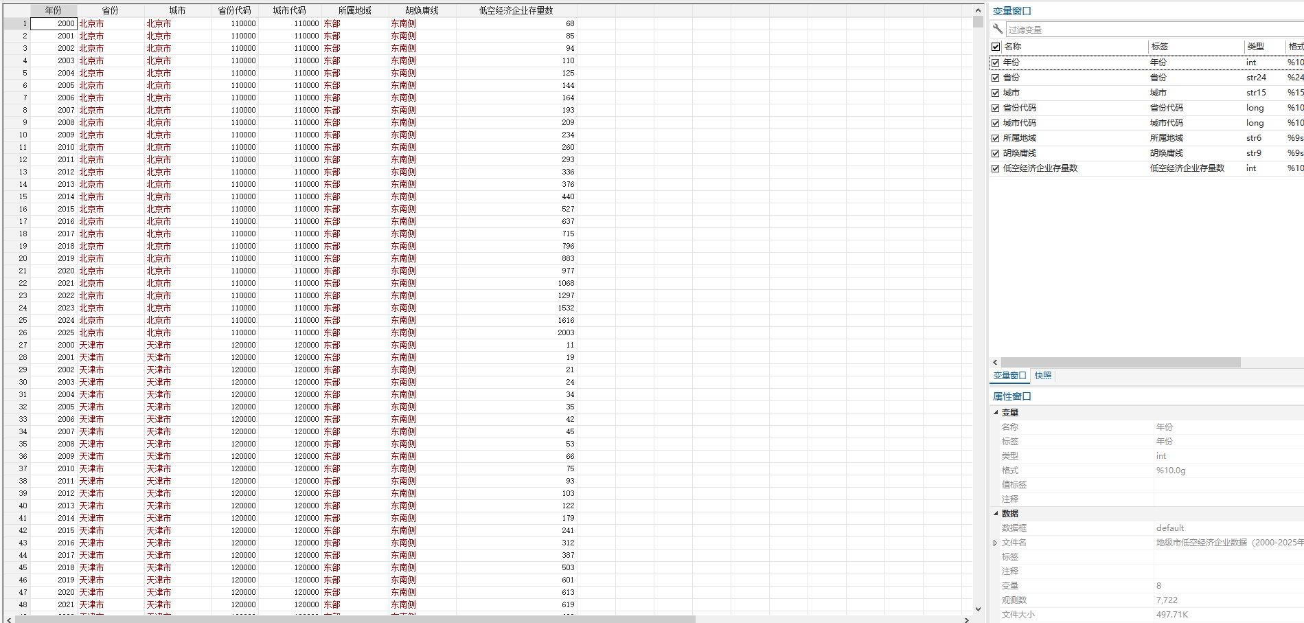 2000-2025年全国297地级及以上城市低空经济企业存量数面板数据