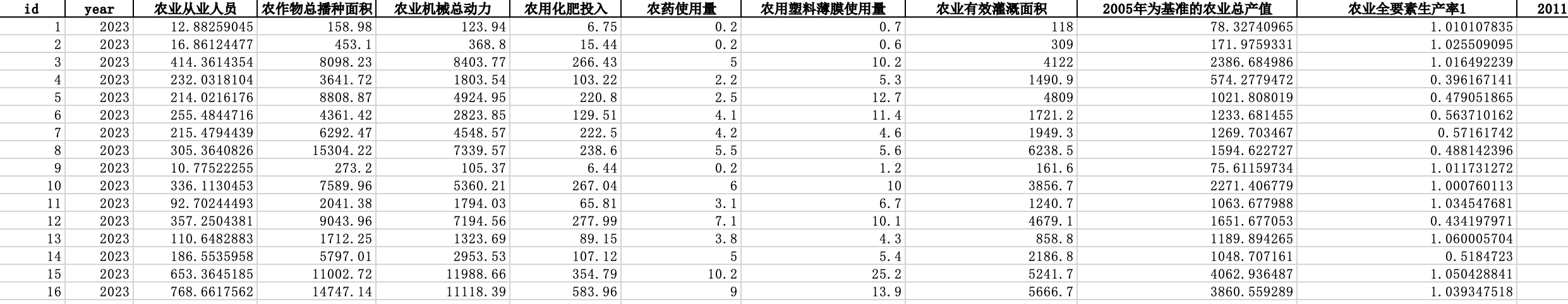 农业全要素生产率指在农业生产活动中,剔除土地、劳动力、资本等传统投入要素的增长贡献后,由技术进步、管理优化、制度创新等因素驱动实现的产出增长部分。作为农业发展的 “导航仪” 与 “晴雨表”,农业全要素生产率数据能为农业生产经营、政策制定及资源优化配置提供精准且可靠的决策依据