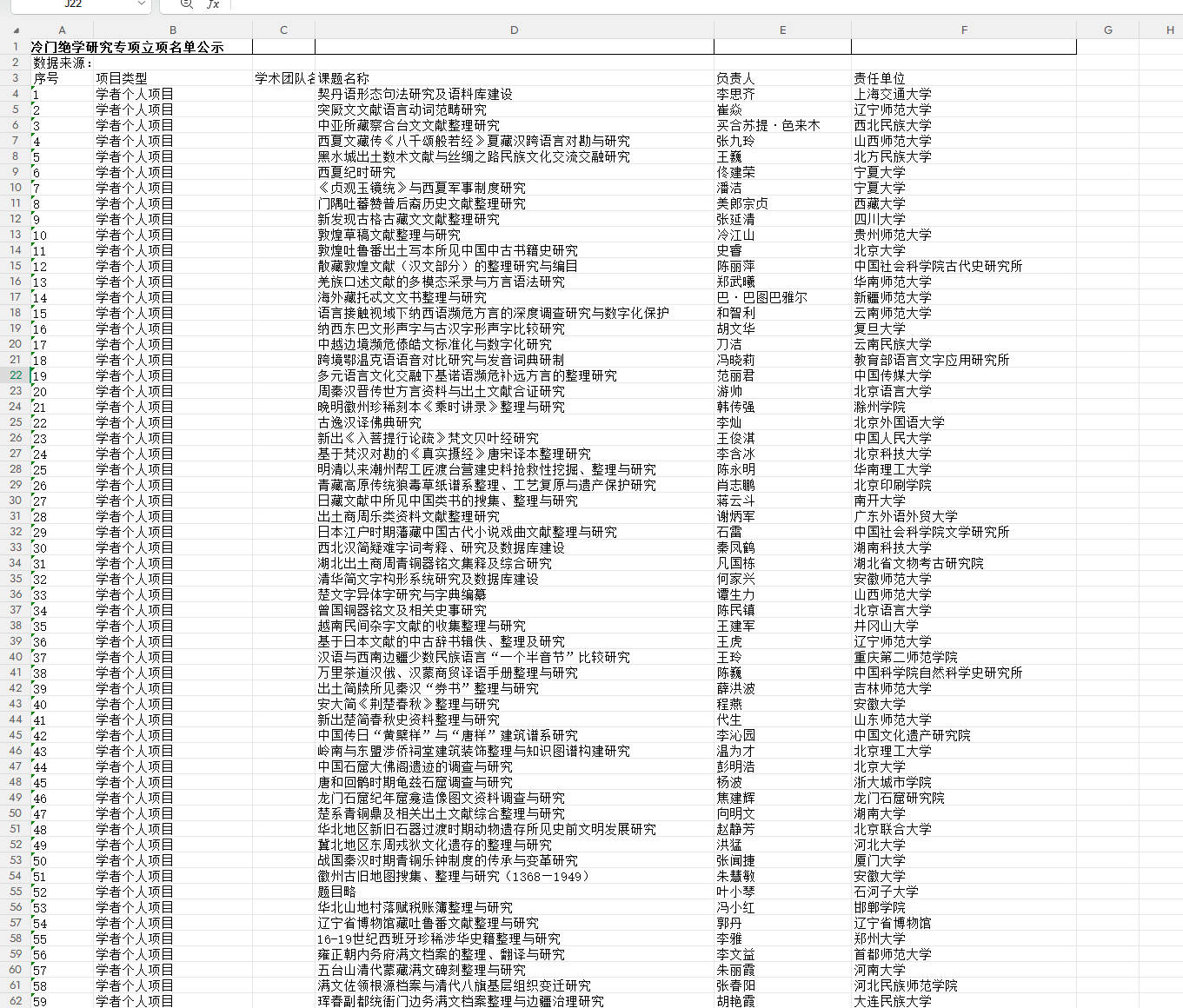 数据名称:2025年国家社科基金冷门绝学研究专项立项名单公示