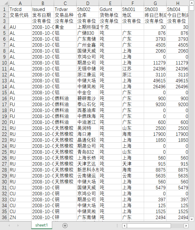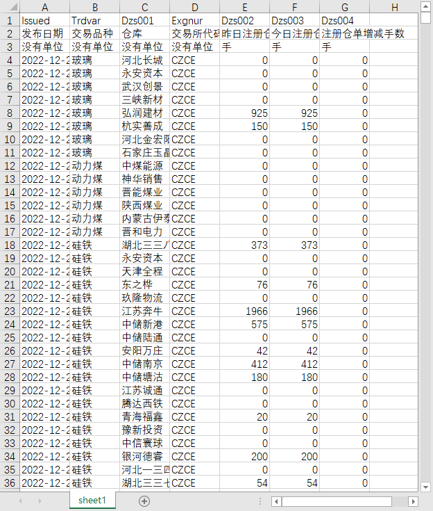 交易代码 发布日期 交易品种 仓库 货物单位 地区 昨日已制成仓单的货物数量 今日已制成仓单的货物数量 已制成仓单的货物数量增减