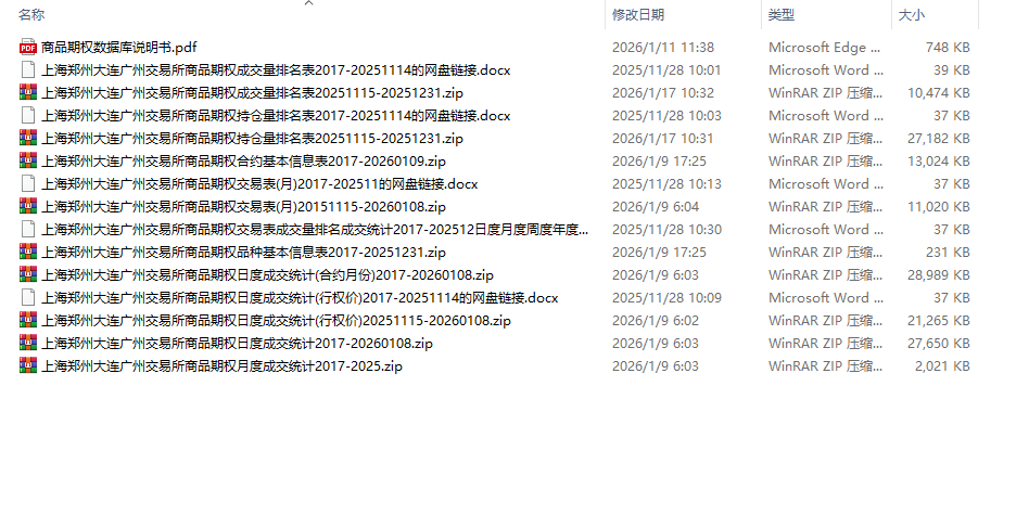 上海郑州大连广州交易所商品期权日度成交统计(行权价)20251115-20260108.zip
