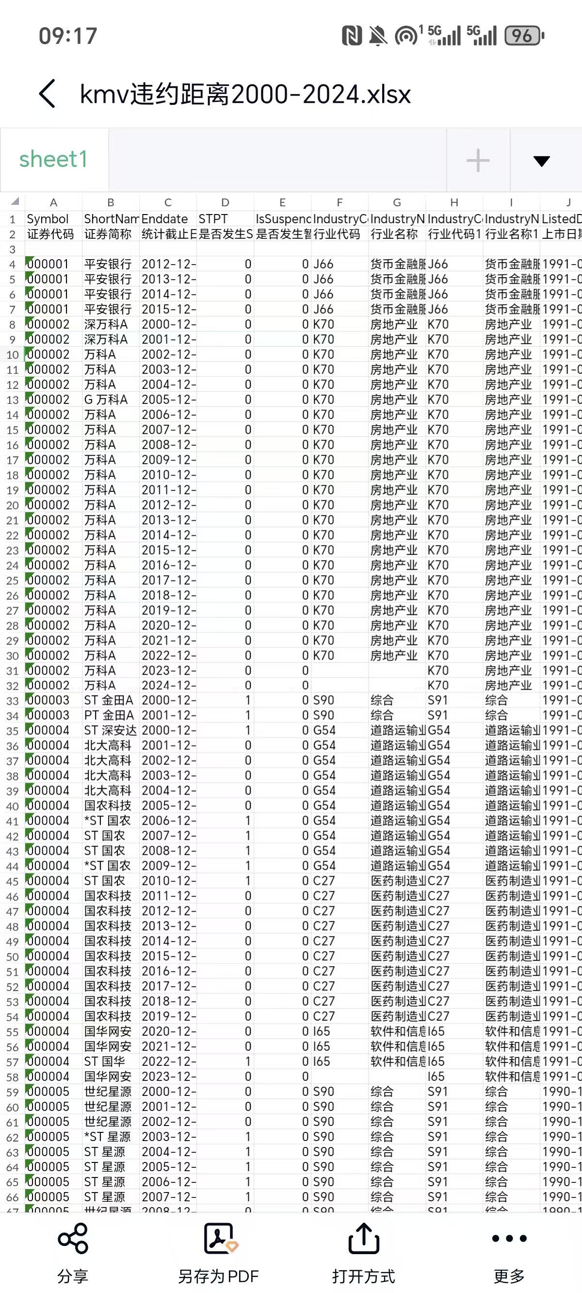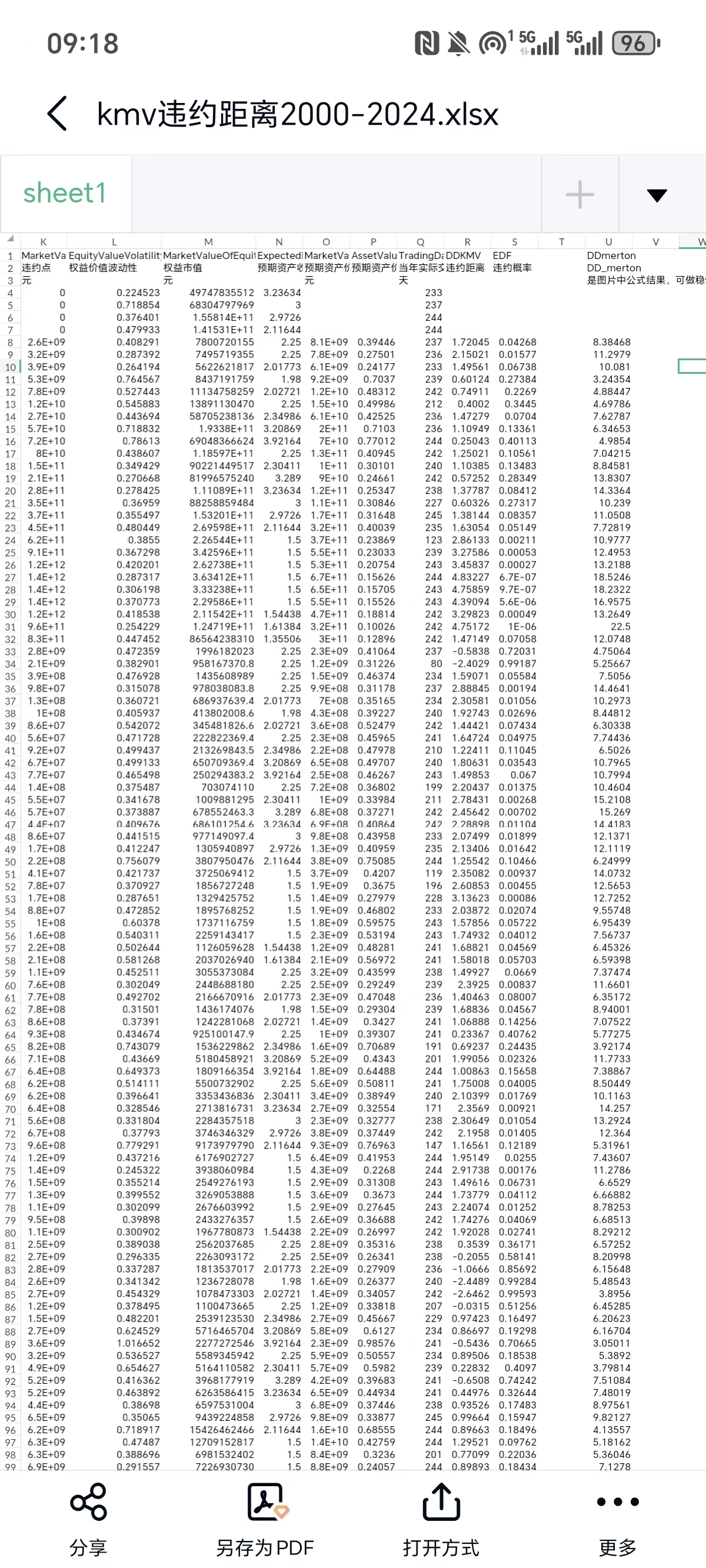 数据名称:KMV模型MATLAB代码与A股所有上市公司的违约距离(2001-2024年)