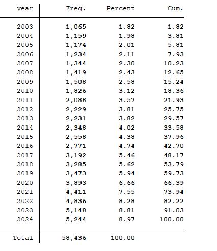 | 上市公司数字化转型程度指标计算Stata代码(2001-2024年数据) | https://bbs.pinggu.org/thread-15681696-1-1.html | 2024 |