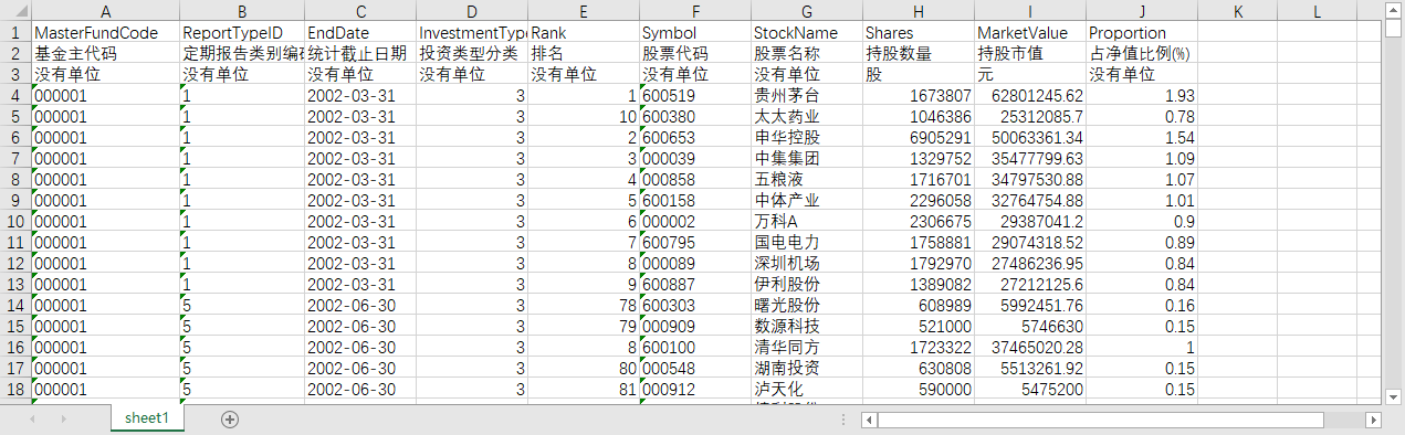 全国证券市场中国公募基金投组投资组合股票投资明细表2000-2025日度持股名称数量市值比例等