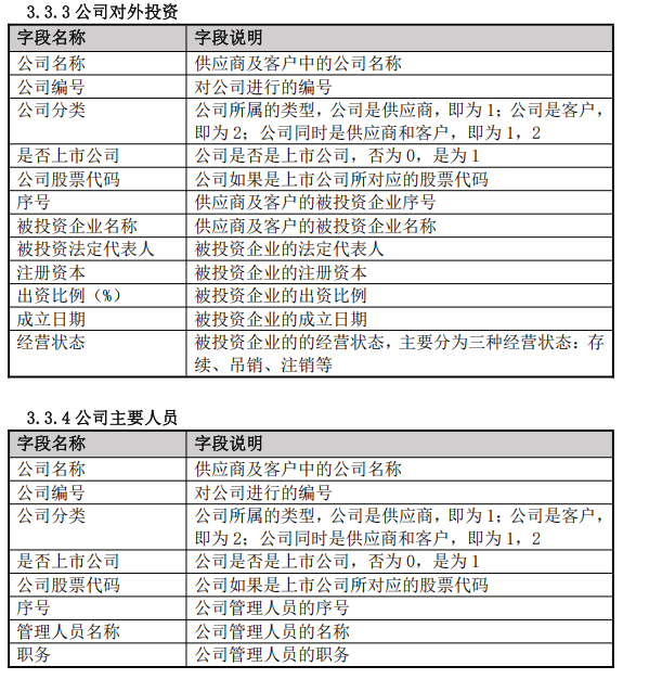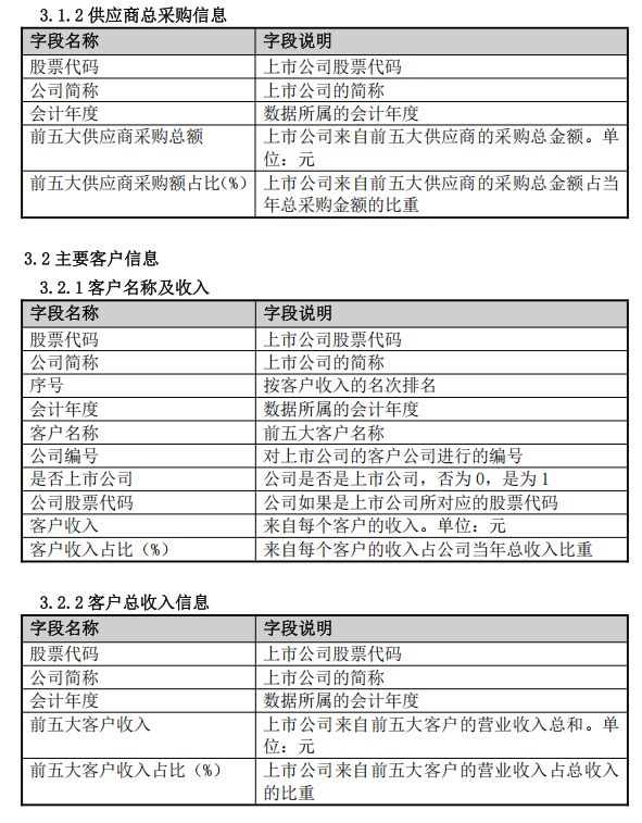 SCRD包含中国上市公司供应商信息、客户信息、供应商及客户公司信息三个模块,共8张表。其中,供应商信息包括前五大主要供应商名称及采购额、供应商总采购信息;客户信息包括前五大主要客户名称及收入额、客户总收入信息;供应商及客户公司信息包括公司基本信息、股东信息、对外投资、主要人员。SCRD包括2001年至今上市公司的供应商和客户信息。