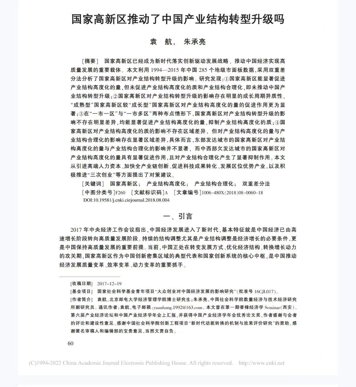 [1]袁航,朱承亮.国家高新区推动了中国产业结构转型升级吗[J].中国工业经济,2018(08):60-77.