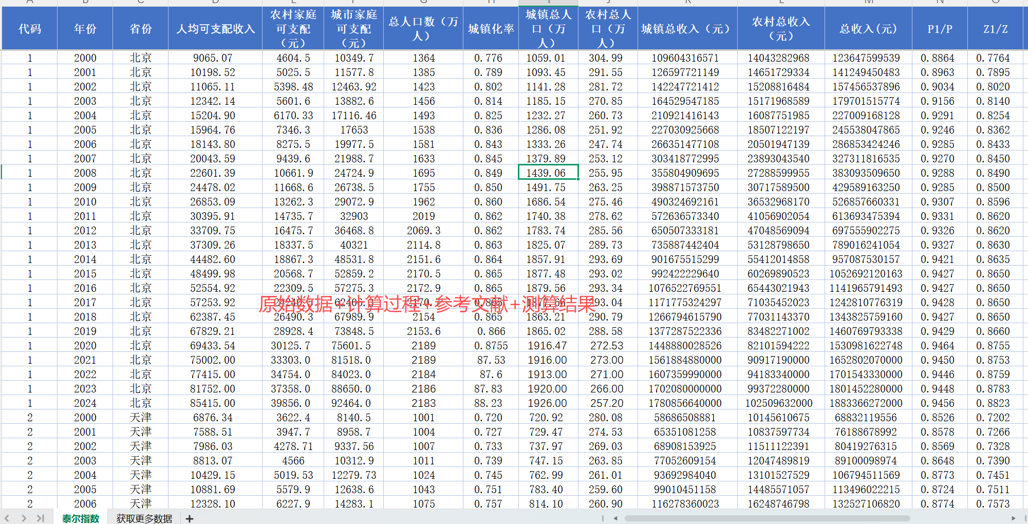 31省-城乡收入差距泰尔指数数据(2000-2024年)