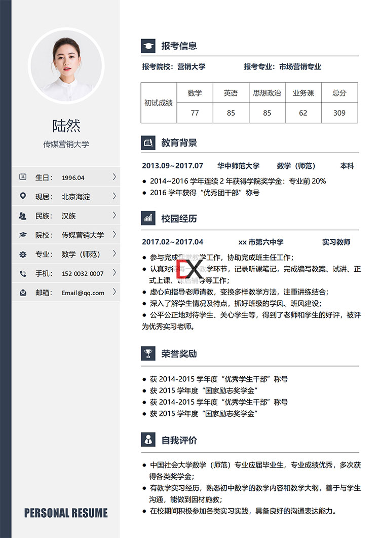 | 考研复试调剂个人简历模板5.doc