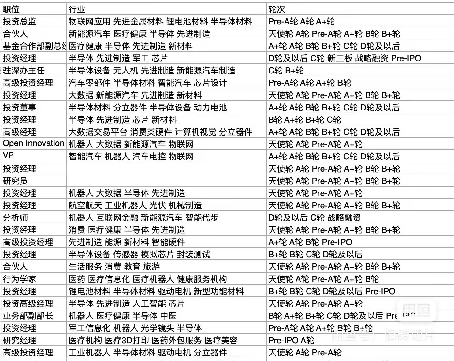 业内资深人士手工编写的2026年最新版活跃投资人名单,包含投资人姓名、职位、电话、机构名称、偏好行业、偏好轮次,4000++个数据,已经剔除没有额度和不活跃人员。