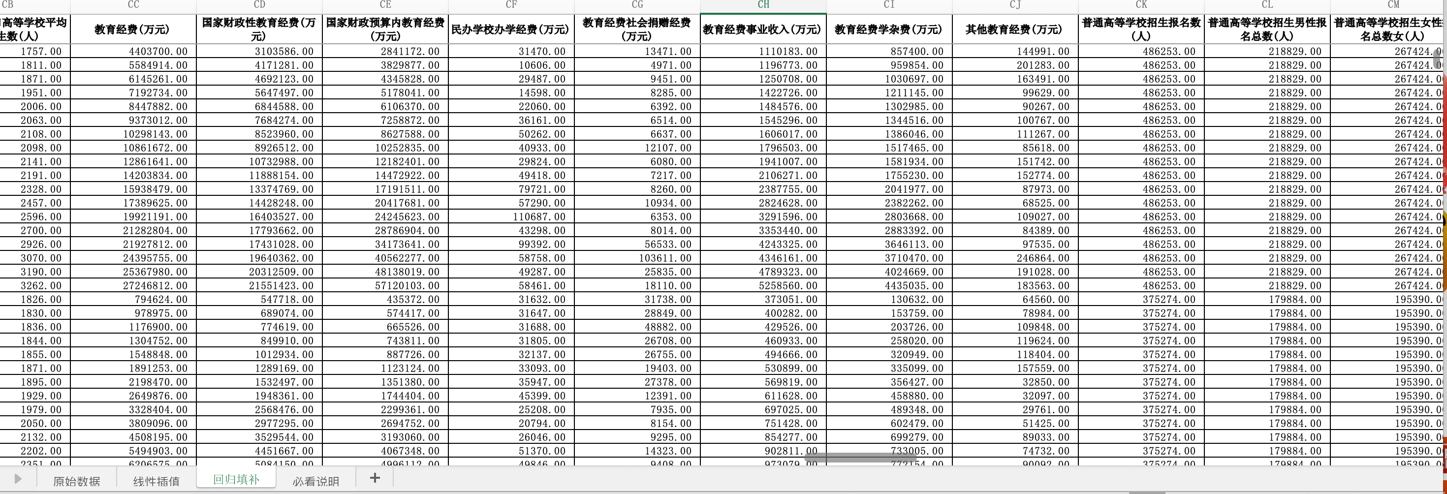 其他教育经费 | 普通高等学校招生报名数 | 普通高等学校招生男性报名总数 |