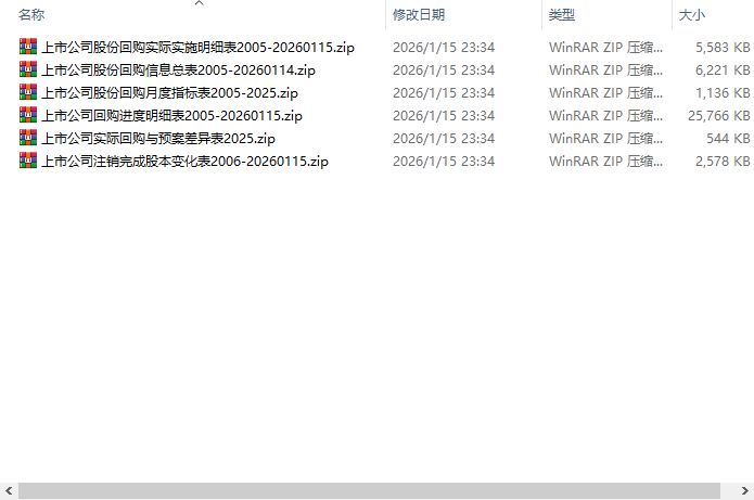 上市公司股份回购实际实施明细表2005-20260115.zip