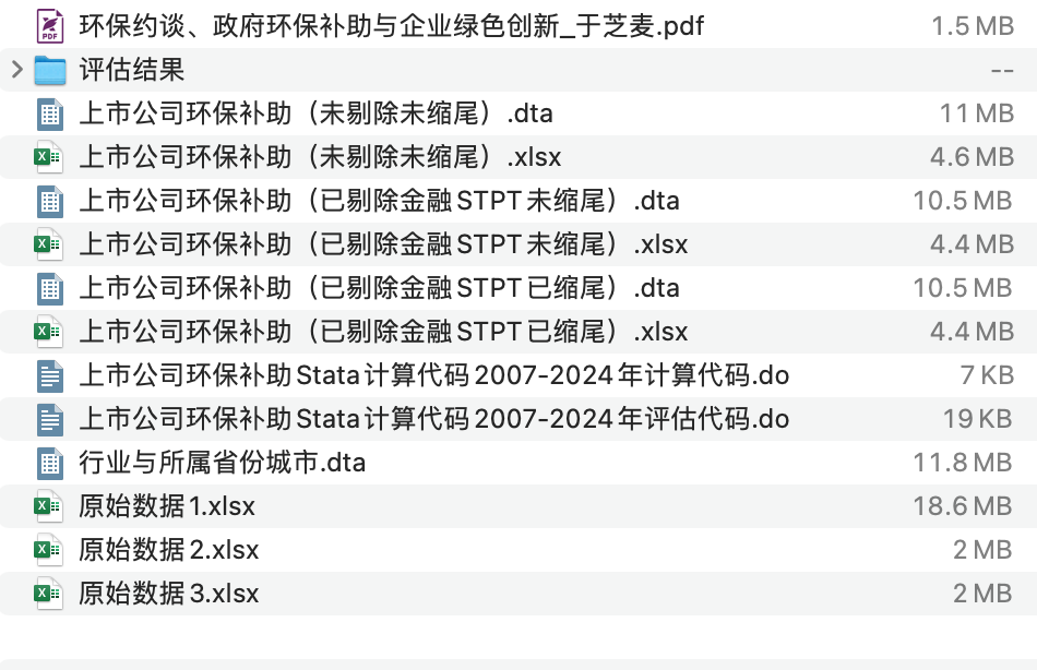 2007-2024年上市公司环保补助excel、dta格式及do代码.zip