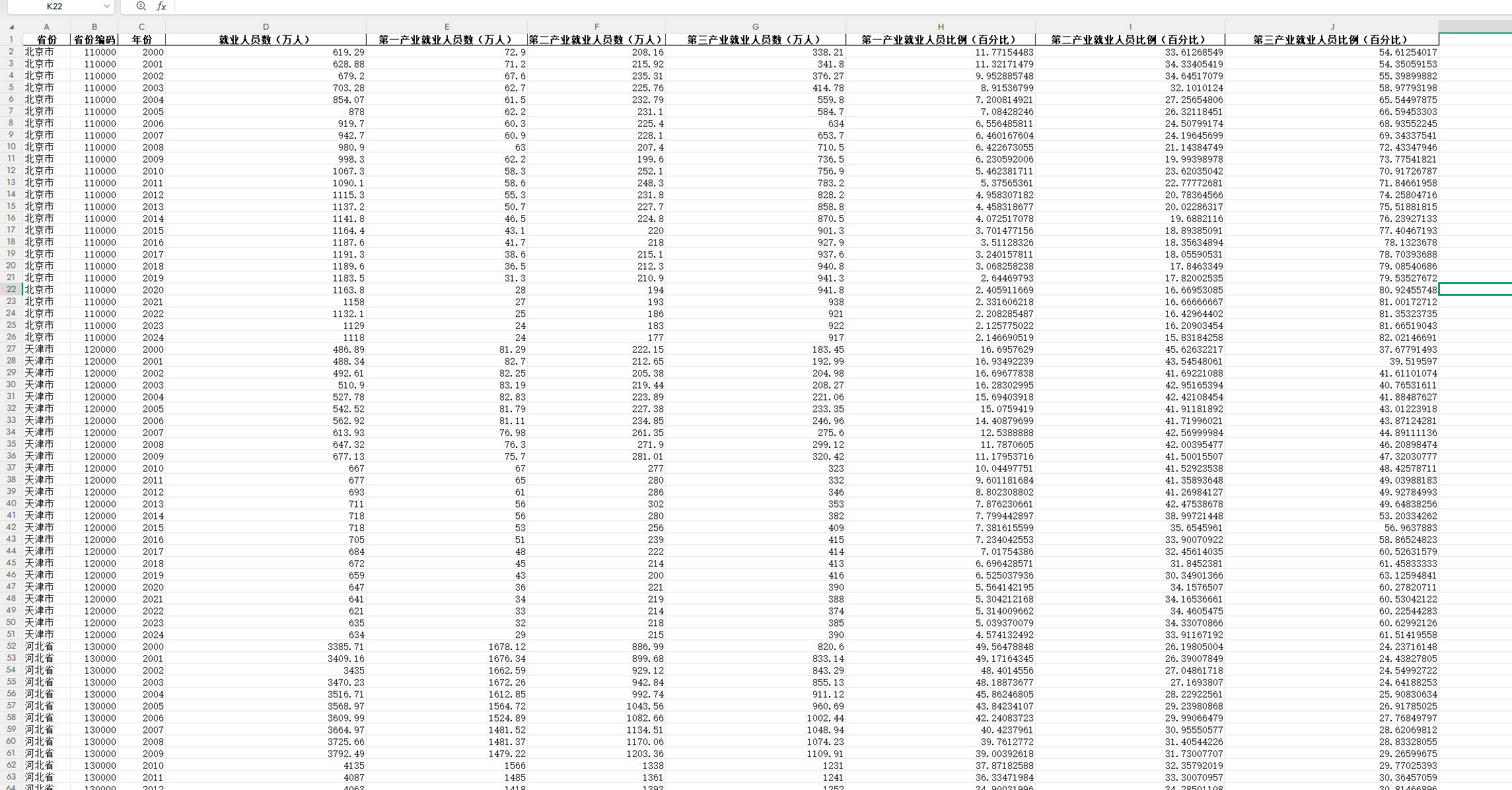 (3) 区域发展模式对比:对比不同省份的就业结构,可以揭示以制造业为主导(这也是第二产业占比高)与以服务业为主导(第三产业占比高)的不同发展模式及其对就业稳定性的影响。