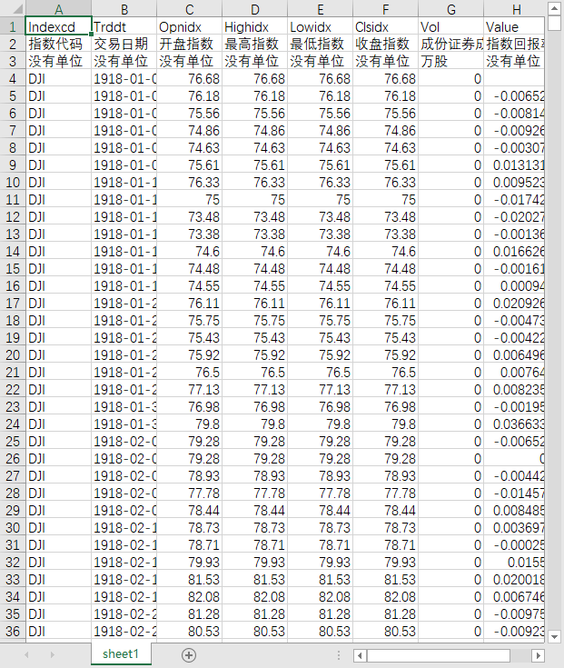 韩国日本法国英国美国纳斯达克道琼斯国际指数年月日行情文件1918-2025开收盘价指数回报率
