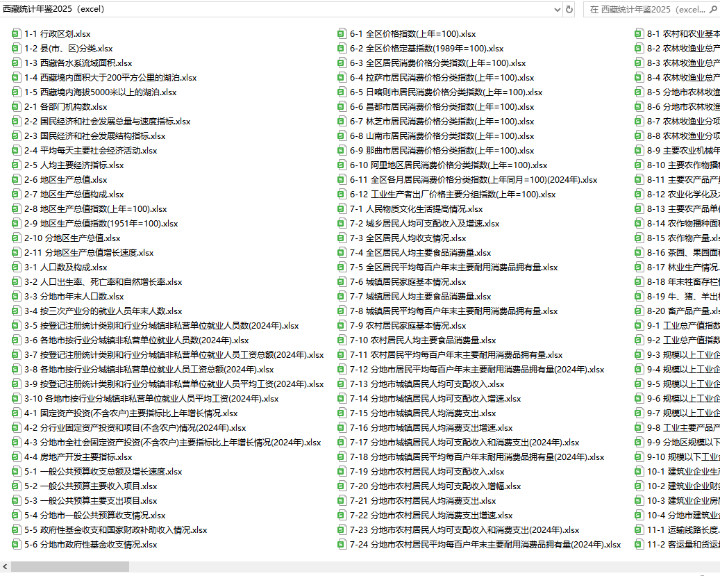 西藏统计年鉴2025(excel格式)