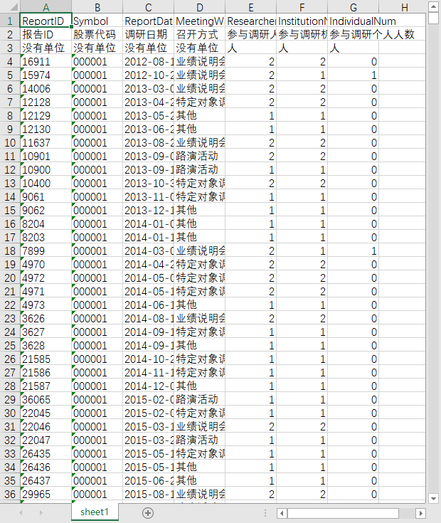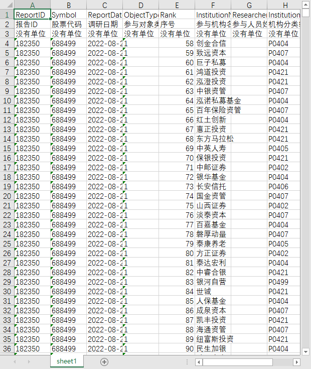 报告ID 股票代码 调研日期 参与对象类型 序号 参与机构名称 参与人员姓名 机构分类编码 机构分类名称