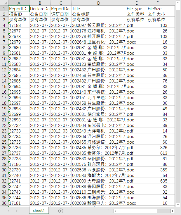 报告ID 公告日期 调研日期 公告标题 文件类型 文件大小