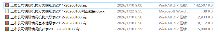 上市公司调研机构分类明细机构关联表调研情况统计表2011-20260108