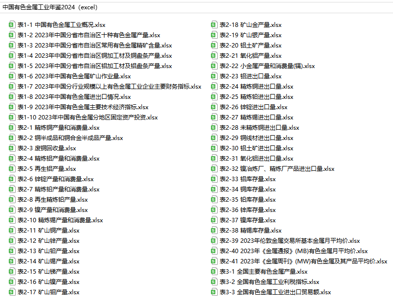 中国有色金属工业年鉴2024(excel).rar