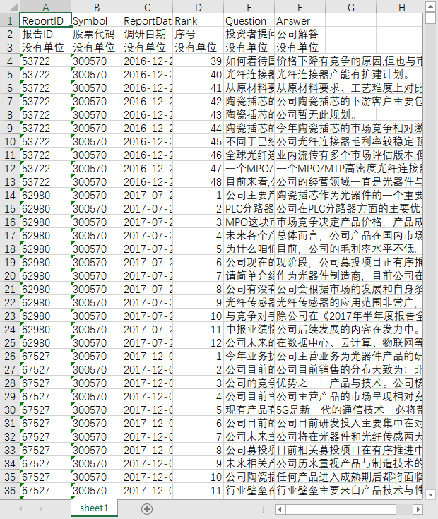 报告ID 股票代码 调研日期 序号 投资者提问 公司解答