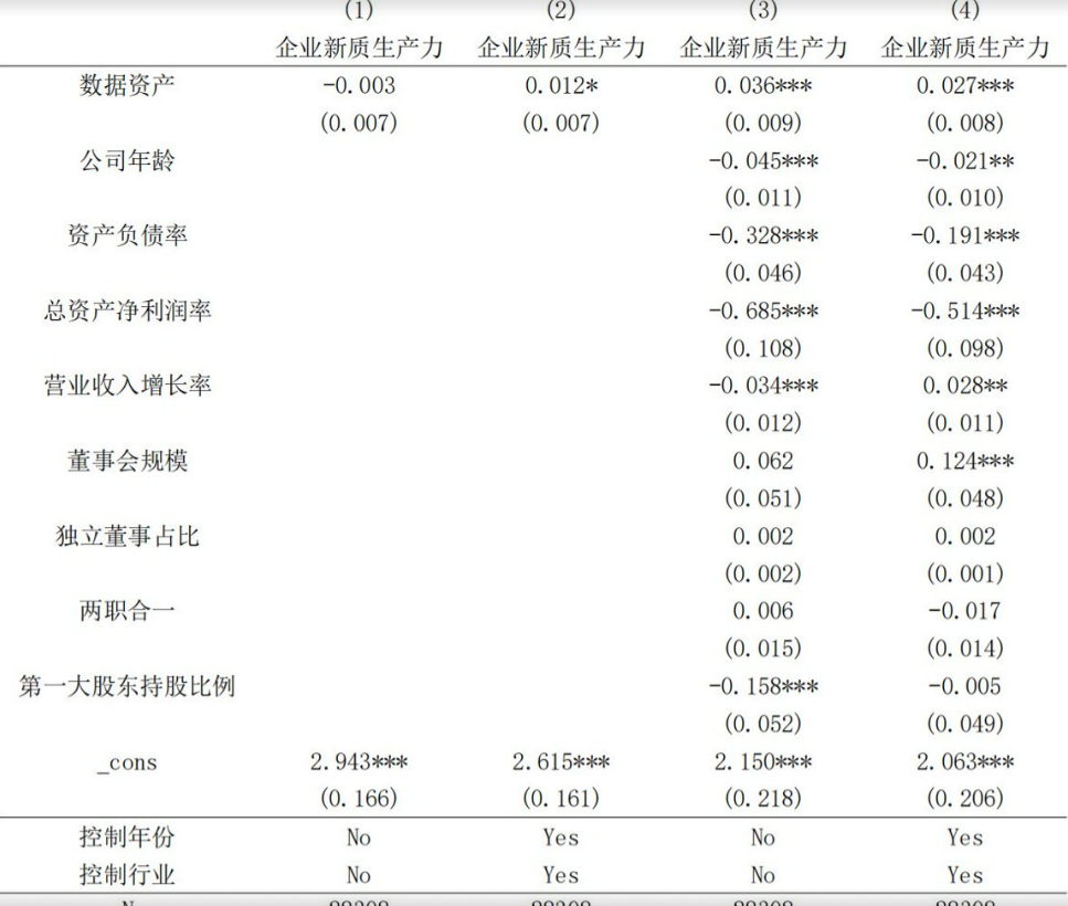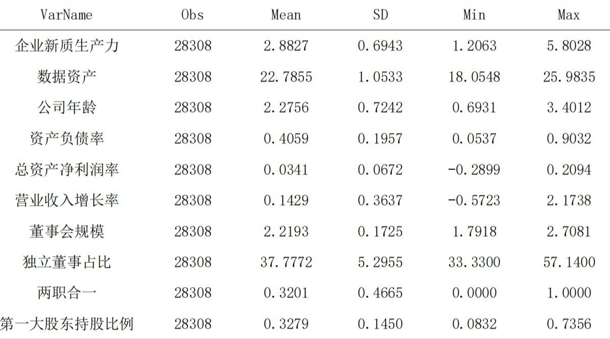 本文基于2013-2023年我国A股上市公司企业数据,考察数据资产对企业新质生产力的影响,参照《华东经济管理》武永霞(2025)的做法,对《数据资产、数字化转型与企业新质生产力》一文中的基准回归部分进行复刻关键指标构建: