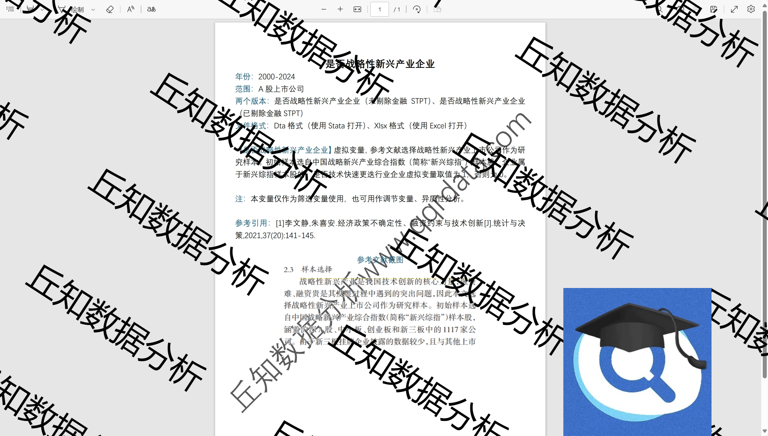 是否战略性新兴产业企业2024-2000年上市公司数据含Stata代码参考——丘知数据分析
