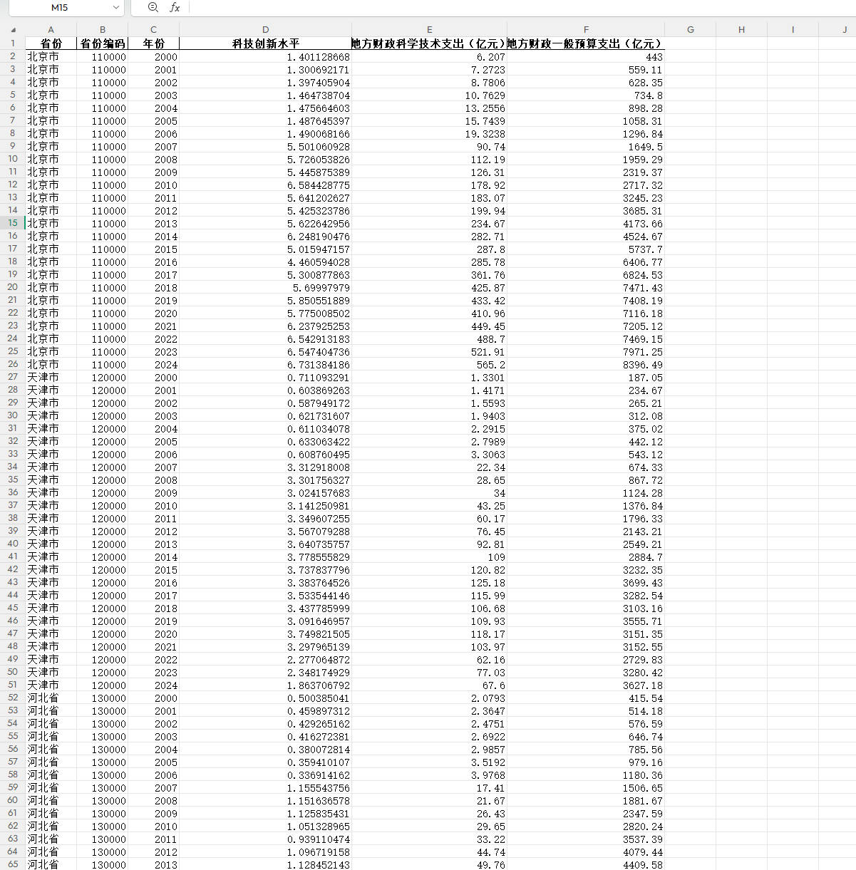 本数据集提供了中国31个省级行政区2000-2024年的科技创新水平指标数据。