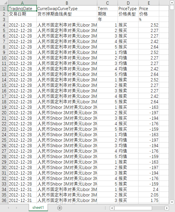 交易日期 货币掉期曲线类型 期限 价格类型 价格