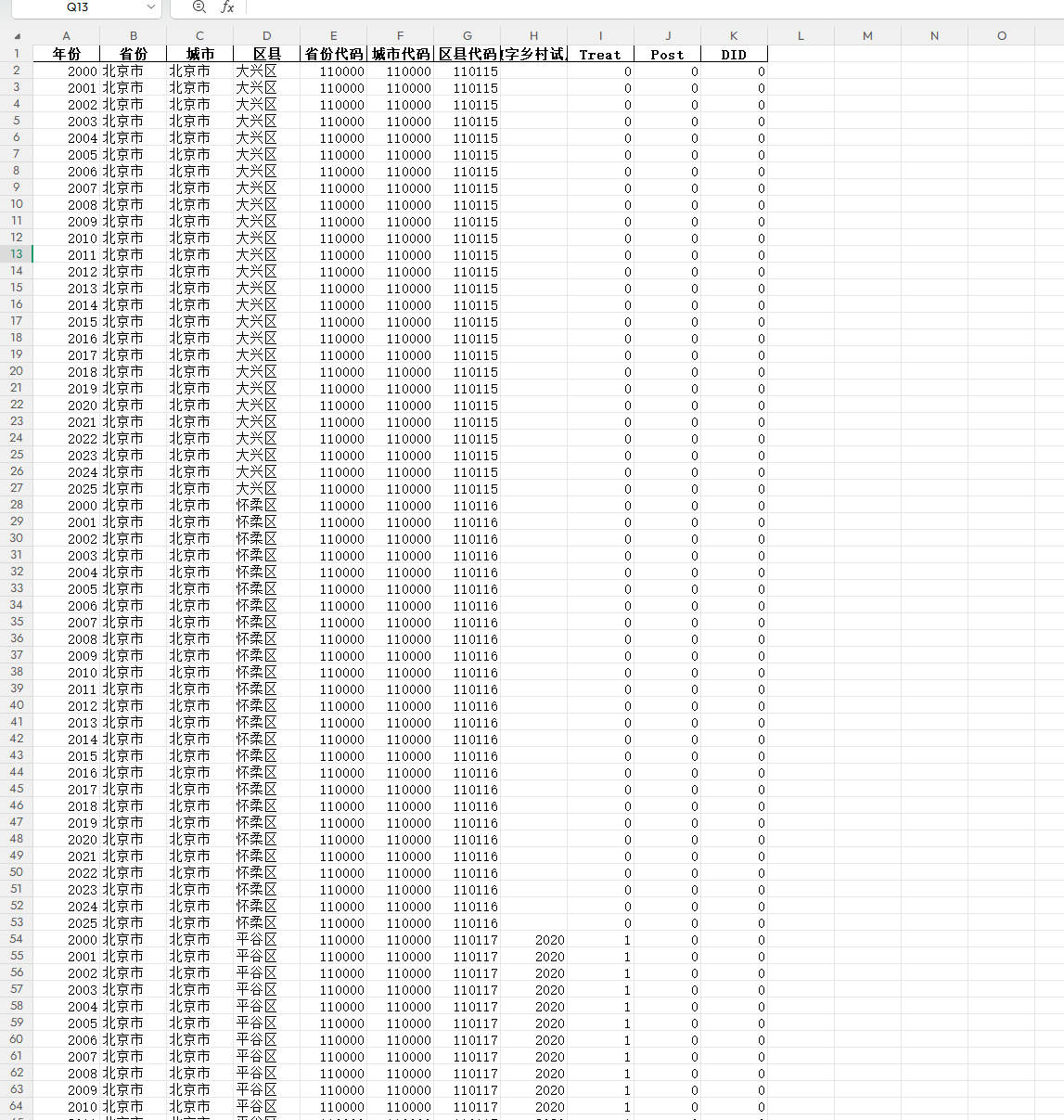 - Treat=1:地区属于国家数字乡村试点县(区)(第一批或第二批);否则为0。